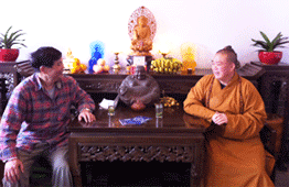 時任河南省人民政府省長郭庚茂先生(左)與臺州商會支部書記、《百花散》傳人梅安富先生合影